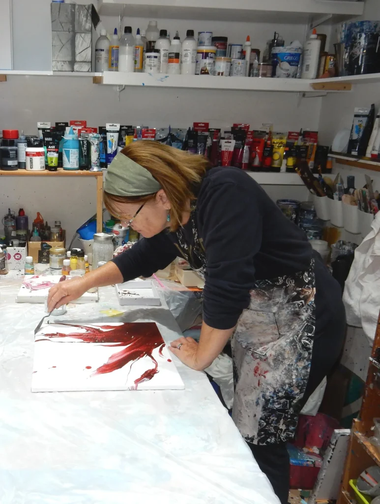 After taking maternity leave from work and raising 3 children, my artwork took a bit of a back seat. It wasn’t until we moved to the coast in Spain that I had the chance to start creating again. Inspired by the ocean and my beautiful surroundings here in Andalucia, I began experimenting with acrylics, mediums and fluid art.
